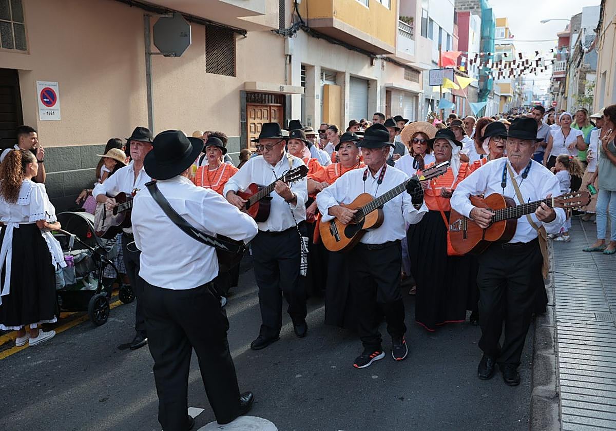 La romería ofrenda en honor a la Virgen del Carmen que organiza La Isleta ha adquirido en esta ocasión un aire más marinero, ya que este sábado se han sustituido las tradicionales carretas tiradas por animales por unas barquillas fabricadas por integrantes de la comisión que organiza el programa de actos, y que constituye una de las novedades de este 2023.