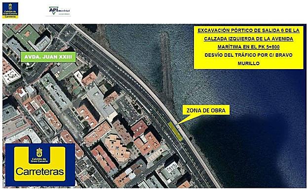 El Servicio de Carreteras y Obras Públicas de Gran Canaria anuncia que este domingo, 27 de marzo, el tramo de la Autovía Marítima entre Bravo Murillo y Juan XXIII (sentido norte) permanecerá cerrado al tráfico por obras.