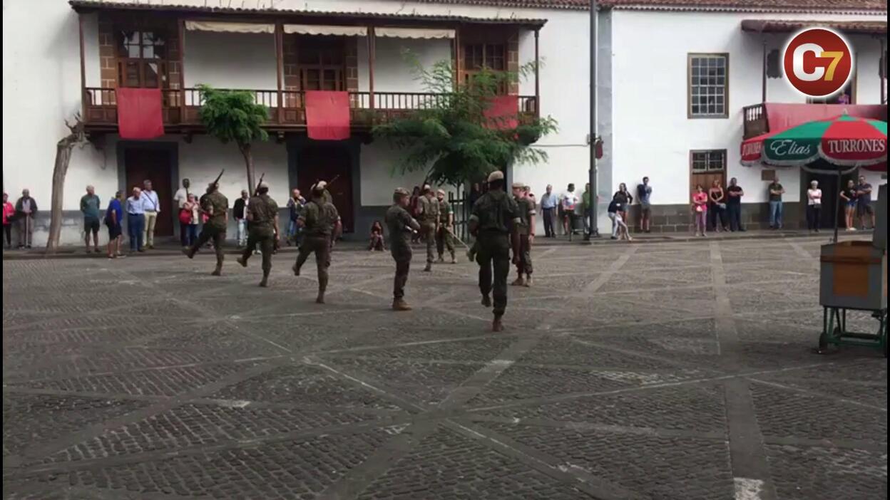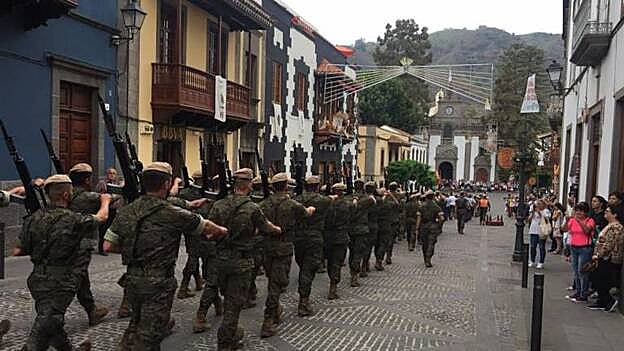 Teror se prepara para la Romería y la Procesión de la Virgen del Pino. En la mañana de este miércoles, los militares del regimiento de infantería ligera Canarias 50 han ensayado por las calles de Teror lo que será el día grande de las fiestas.