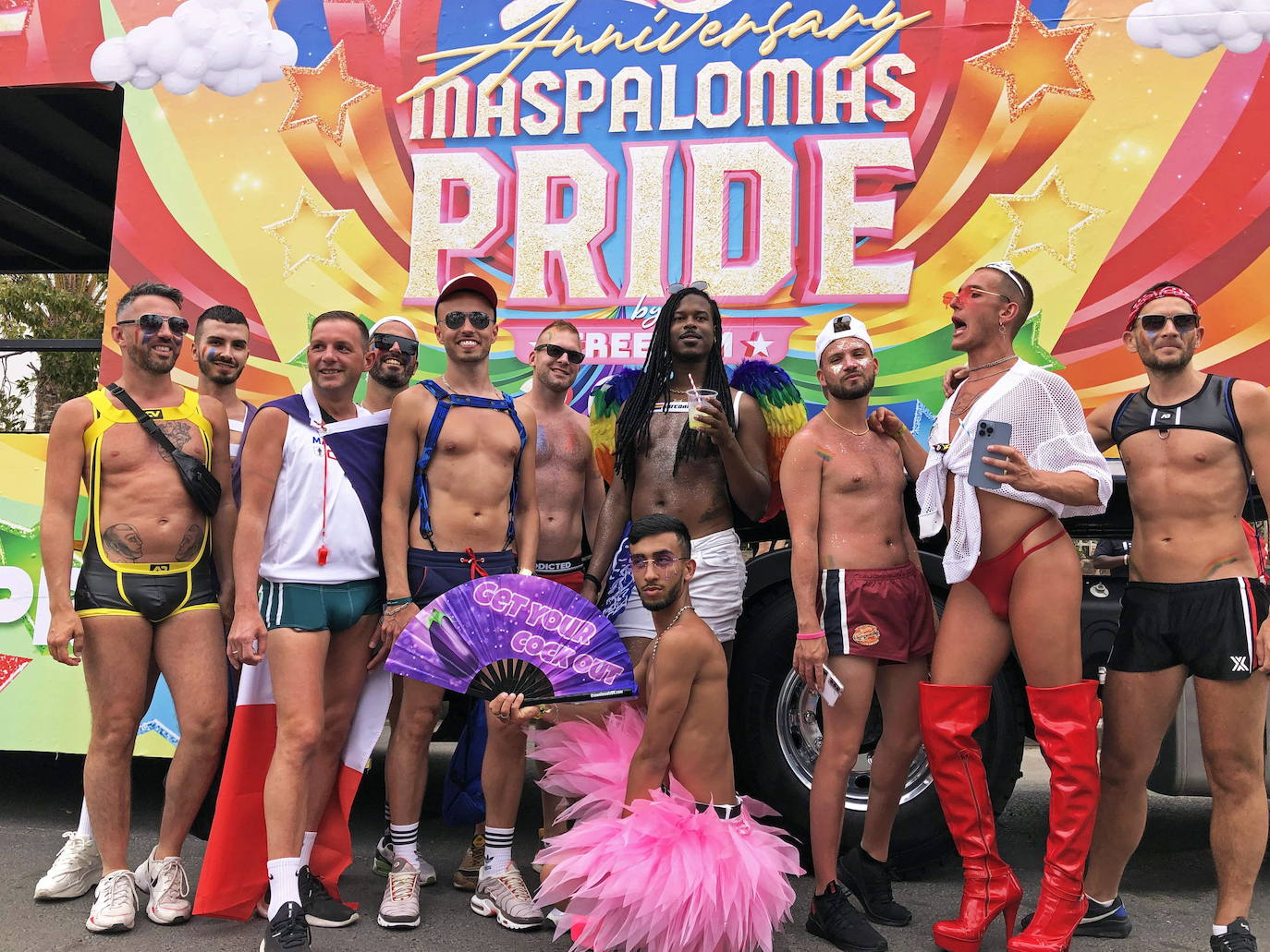 El codirector del Pride, Fernando Ilarduya, que también avanzó como novedad la celebración de una 'pool party' en el propio Yumbo, destacó que la cabalgata de este año, el sábado 11, contará con un máximo histórico de carrozas, 35 más tres de la organización. Saldrá del Riu Palace Maspalomas, subirá por la Avenida de Tirajana y acabará en la puerta principal del Yumbo.