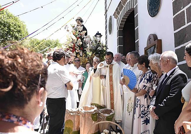 Cuando finalizó la eucaristía, entre aplausos y vítores de los fieles, la imagen de San Antonio El Chico salió al pórtico para, seguidamente, emprender junto a la gran comitiva su tradicional recorrido por las calles del casco histórico al ritmo de la Banda Municipal de Mogán.