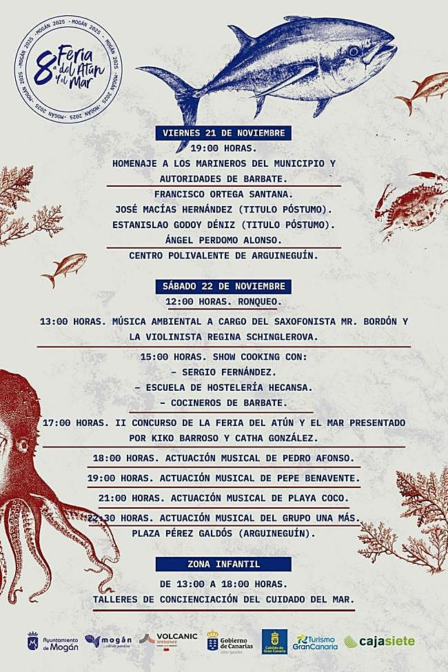 El Ayuntamiento de Mogán organiza la 8ª Feria del Atún con la colaboración de la Consejería de Turismo del Cabildo de Gran Canaria, la Consejería de Agricultura, Ganadería, Pesca y Soberanía Alimentaria del Gobierno de Canarias, a través del proyecto Volcanic Xperience, y Cajasiete.
