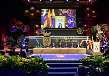 Para resistir al temporal de conflictos geoestratégicos y climáticos globales y seguir no solo a flote sino avanzar con mayor firmeza, recalcó que «mantener nuestra esencia y nuestras convicciones, así como seguir las lecciones de nuestro devenir histórico, son los componentes de la fórmula certera». Y propuso encarar el futuro «con la reconocible bandera de nuestra identidad canaria y grancanaria ondeando en lo más alto del mástil», convencido de que «si lanzamos por la borda nuestra manera de estar en el mundo será más difícil llegar a buen puerto».