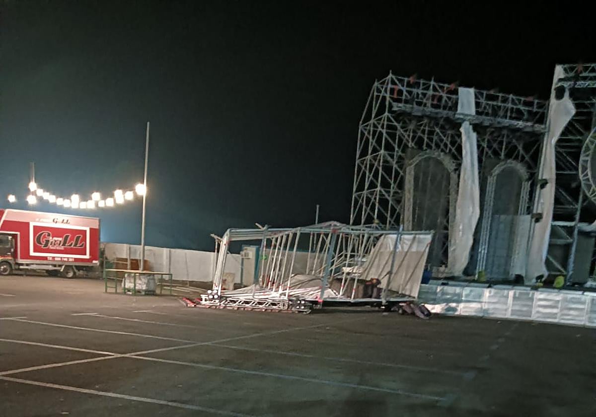 El Ayuntamiento de Gáldar aseguró este viernes que, para solventar el incidente, se iba a proceder al refuerzo del escenario, que cuenta con tres cuerpos diferentes con una altura máxima de 12,5 metros y con 20 metros de ancho, una vez evaluados los daños.