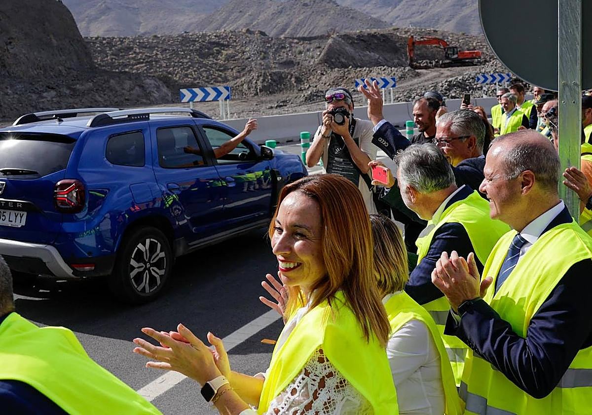 También acudió al estreno el presidente del Cabildo, Antonio Morales, quien se unió al alcalde de La Aldea de San Nicolás al reclamar que el nuevo acceso a este municipio tenga continuidad hasta Mogán para cerrar el anillo insular y se mostró convencido de que la apertura al tráfico de los túneles de Faneque contribuirá al desarrollo económico de La Aldea.