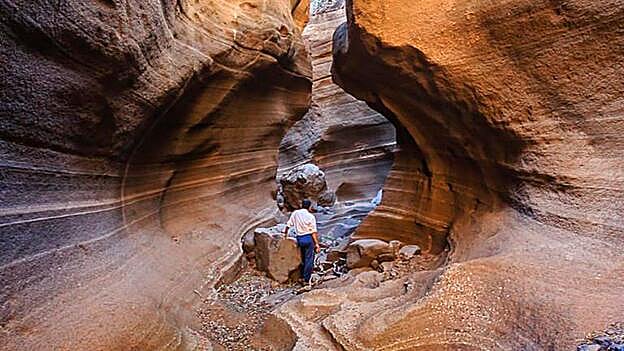 Situado en el sureste de la isla, en Agüimes, poco tiene que envidiar al Cañón del Antílope en Estados Unidos. Este cañón geológico se formó gracias a la fuerza del agua, que fue la que moldeó las rocas de esta forma tan espectacular. Se llega en apenas cinco minutos y no tiene dificultad. Los afortunados que ya han pasado por ahí recomiendan poner en google Tobas de Colores del Barranco de las Vacas, ya que si solo incluyes el nombre te lleva a otro sitio.