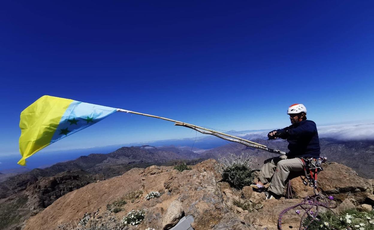 Según ha informado Radio Televisión Canaria a primera hora de este martes un equipo especial ha escalado hasta la cima de este monumento protegido para retirar la insignia que clavaron hace unos días de forma ilegal.
