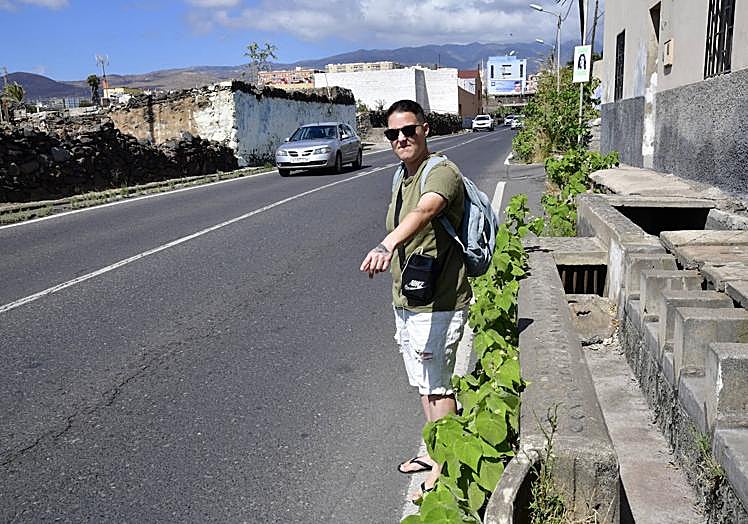 El vecino explica que hace años esto era peor, ya que el tramo de peligro era todavía más amplio. «El trozo de acera que hay desde aquí hasta la parada de guagua antiguamente también era una acequia. Lo que pasa es que conseguí hablar con Paco Valido, que estaba de concejal en aquel entonces, y le conté que tenía dos hijos pequeños con minusvalía que no podían pasar seguros hacia abajo. Entonces se comprometió conmigo a tapar la acequia y a hacer la acera que hoy en día tenemos», asegura este teldense.