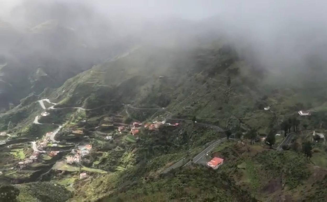 Un senderista ofrece a CANARIAS7 el retrato en vídeo del paisaje que ofrece este sábado una parte del municipio de Tejeda.