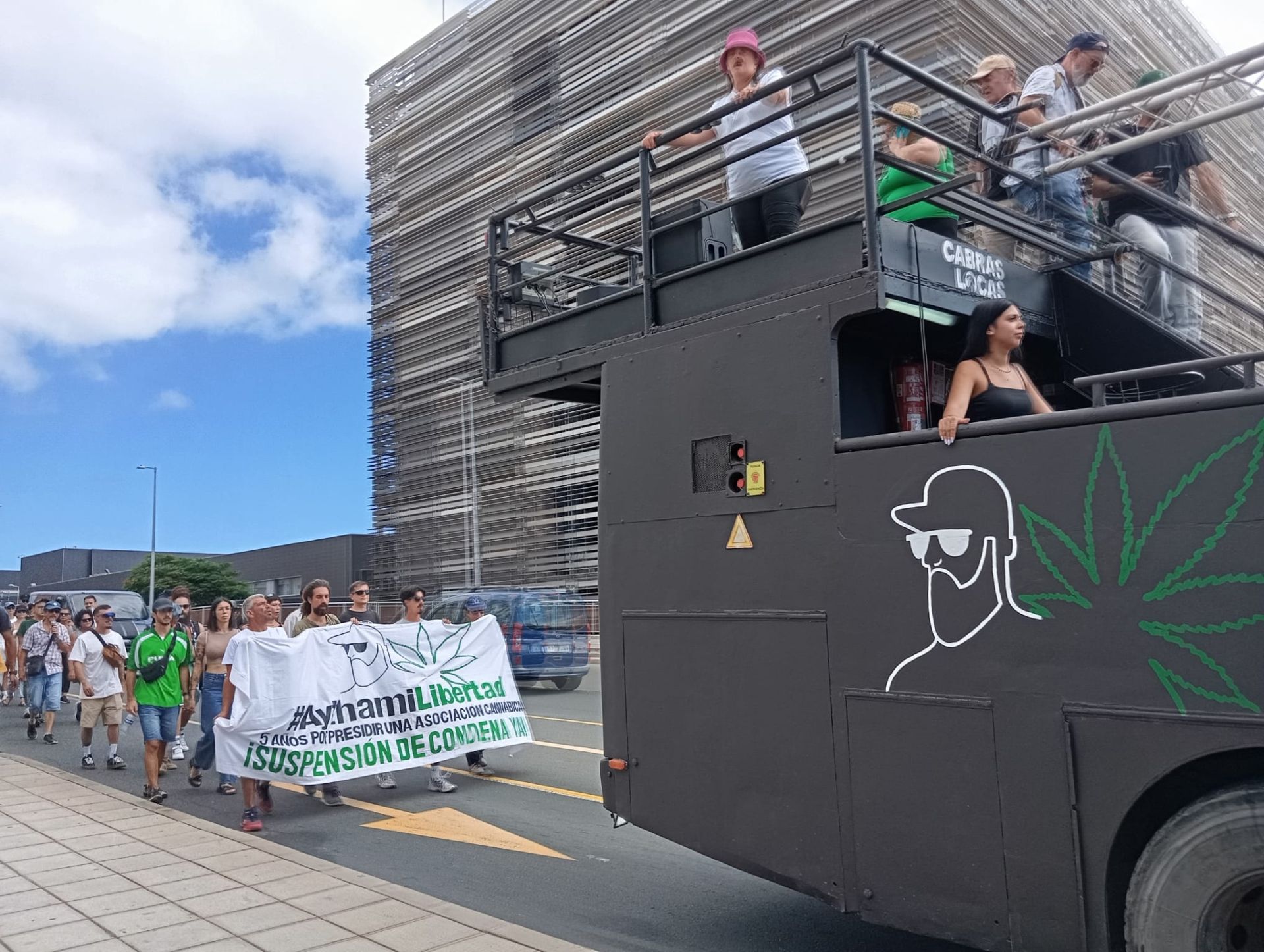 «Hemos querido denunciar públicamente que Aythami no es un delincuente. Su conducta solo ha protegido a los socios y usuarios de cannabis de Beletén. Estas condenas dan un mensaje equivocado», resaltan. La marcha, encabezada por una carroza, concluyó en la prisión Las Palmas I, donde Aythami Santana cumple condena, y allí se leyó un comunicado, así como un precioso poema realizado por el filólogo Víctor García. «La pérdida de derechos que venimos sufriendo los usuarios y las asociaciones cannábicas estos últimos 10 años ha desembocado en el peor de los escenarios».