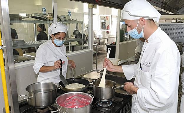 Los que colaboran con la feria son cuatro PFAE (proyectos de formación en alternancia con el empleo), que son los que conforman esta escuela, dos en el turno de mañana y dos en el de tarde, dos de cocina y repostería y dos de bar y cafetería en la hostelería. Son Ágape y Aría, estos dos de Garantía Juvenil, destinado a desempleados de menos de 30 años, y Arión y Aricia, para mayores de 30. En total, suman 60 alumnos y alumnas.