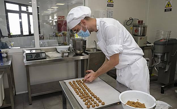 No es la primera vez que practican en la calle. Ya prestaron sus servicios para la primera edición de la feria de este año, como recuerda Mónica González, directora del PFAE Ágape. «Ahora los coge con más experiencia; solo hay que ver las elaboraciones». Falsa aceituna negra, sablé de queso y semillas de girasol, canastilla de lingote de cochino negro, rocas de cereales con chocolate o 'arbolillos de pantana, llegando la Navidad' son algunas de sus exquisiteces.