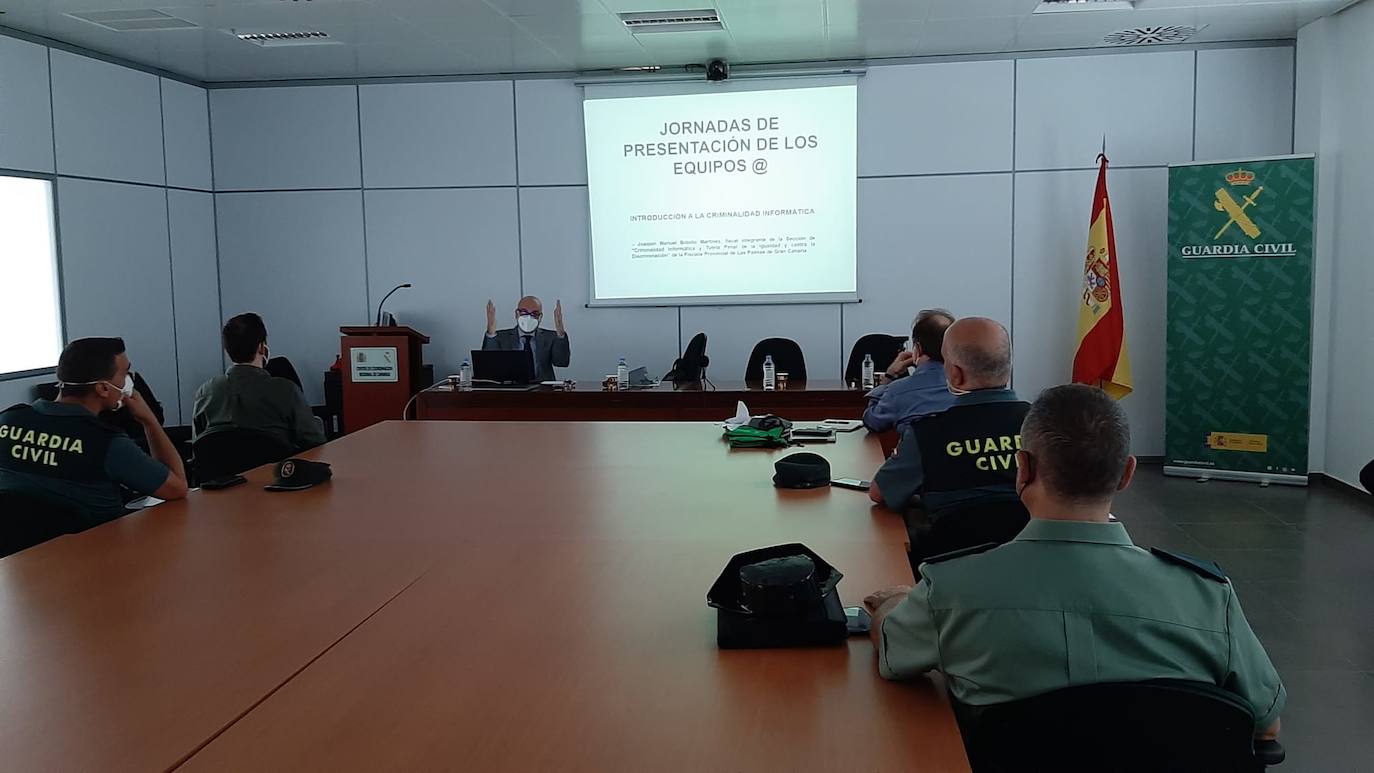 La Comandancia de Las Palmas está realizando una jornada de formación a todo el personal de los Equipos @ de la Comandancia de la Guardia Civil de Las Palmas desplegados en las islas de Gran Canaria Lanzarote y Fuerteventura con el objetivo de formalizar la presentación.