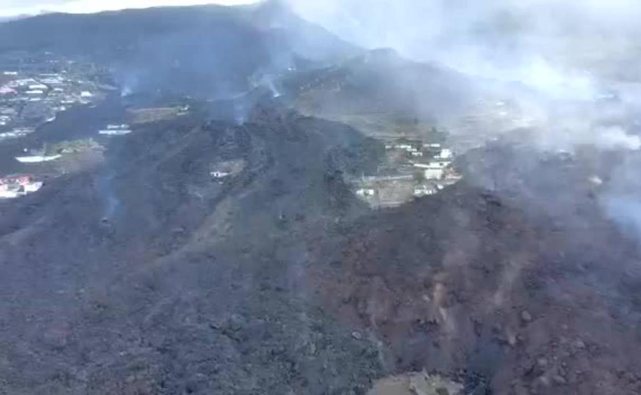 La Unidad Militar de Emergencias (UME) ha publicado un vídeo grbado por un dron en el que se aprecia la extensión de la colada de lava avanzando sin descanso dejando un camino de destrucción y desolación a su paso.