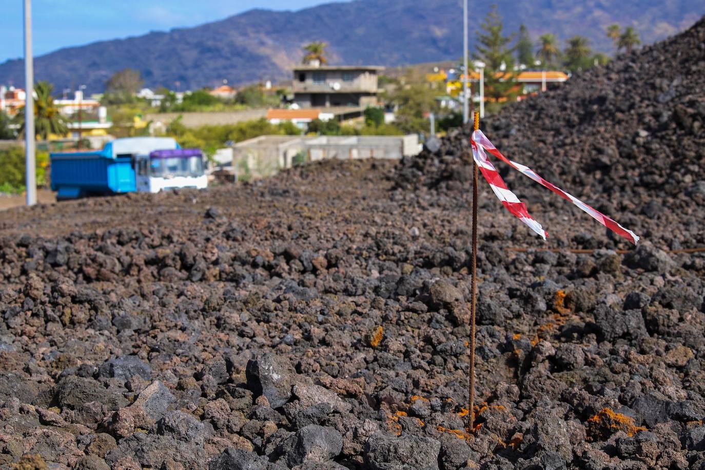A menos de cien metros de la parcela de Ricardo Camacho, cubierta en su totalidad por el malpaís que creó el volcán Tajogaite, existen adosados que se salvaron de los ríos de lava gracias, según cree este vecino, a que «mi casa y la del vecino, que eran grandes, hicieron de muro de contención para que la colada no llegara a la urbanización de al lado».