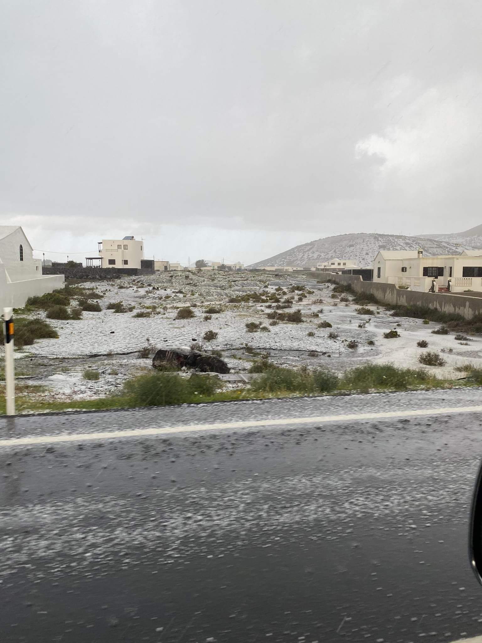 Temporal de lluvia y granizo en Lanzarote