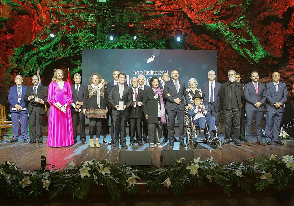 El Auditorio de Los Jameos del Agua fue anoche el decorado del acto institucional de entrega de 18 distinciones del Cabildo, con notable presencia de público. La gala fue el perfecto colofón a un proceso de meses de tramitación, tras complicaciones notables en el pasado mandato. Sirvió para dar cumplimiento al acuerdo por unanimidad adoptado en el salón de plenos de la primera Corporación a finales de noviembre pasado.