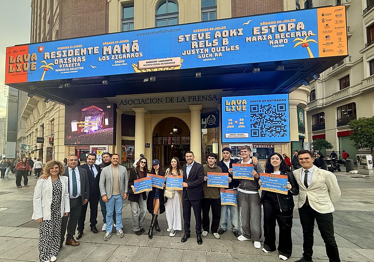 El Palacio de la Prensa, en la Gran Vía madrileña, fue en la tarde-noche del jueves en un escaparate privilegiado para la promoción del Lava Live Festival, acontecimiento musical en Arrecife que organiza Preventos Media, a disfrutar los días 13 y 14 de junio; y 25 y 26 de julio. Tiene la iniciativa respaldo institucional. Se presentó el anuncio oficial.