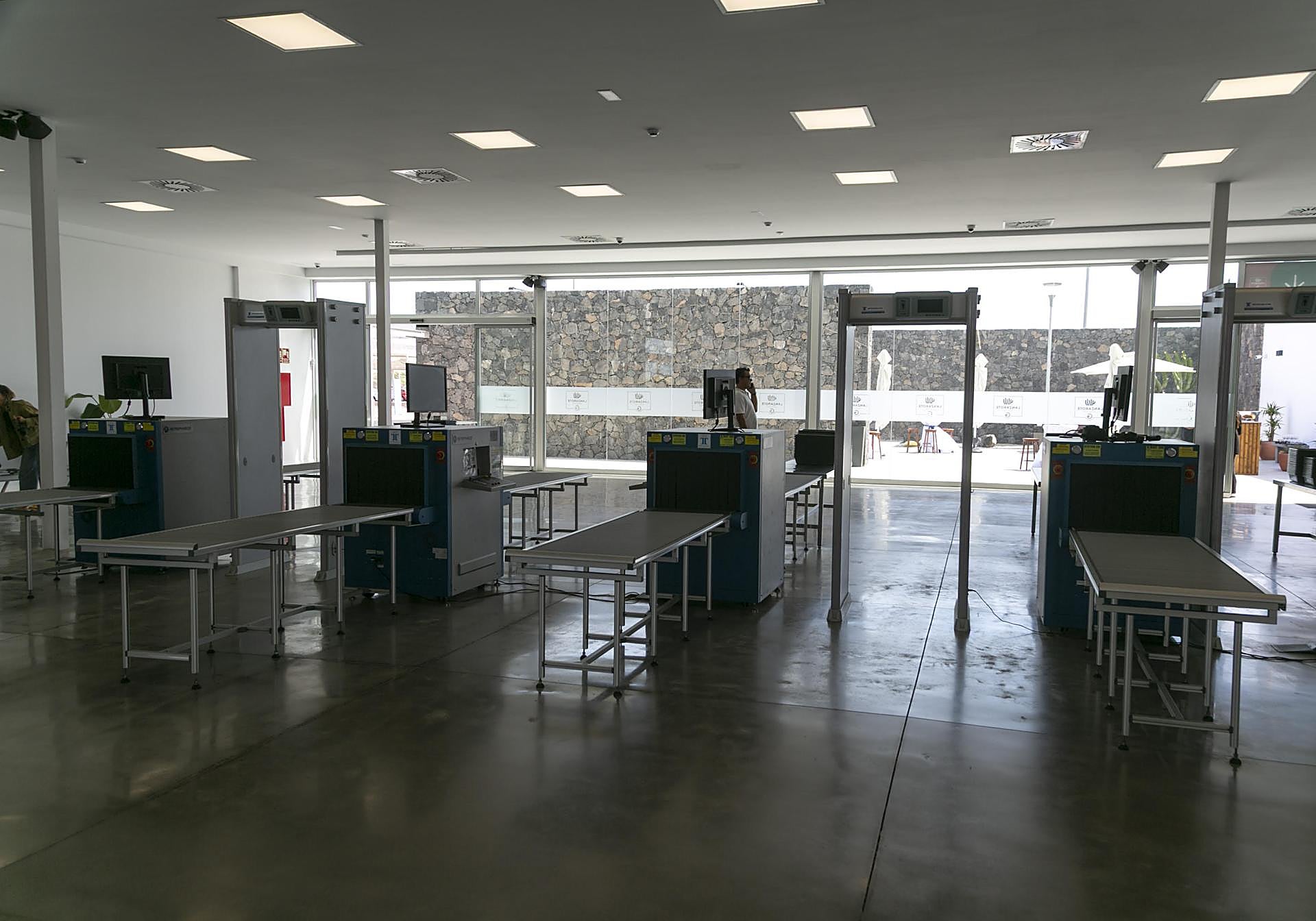 El edificio en Naos, el que más uso va a tener cuenta con una superficie de más de 1.100 metros cuadrados. Y ronda los 500 metros cuadrados la instalación establecida en Los Mármoles. Cada recinto está habilitado para operar con 3 arcos de seguridad y media docena de equipos de revisión del equipaje. Y en ambos espacios, además, zonas para el personal encargado de atender a los viajeros.