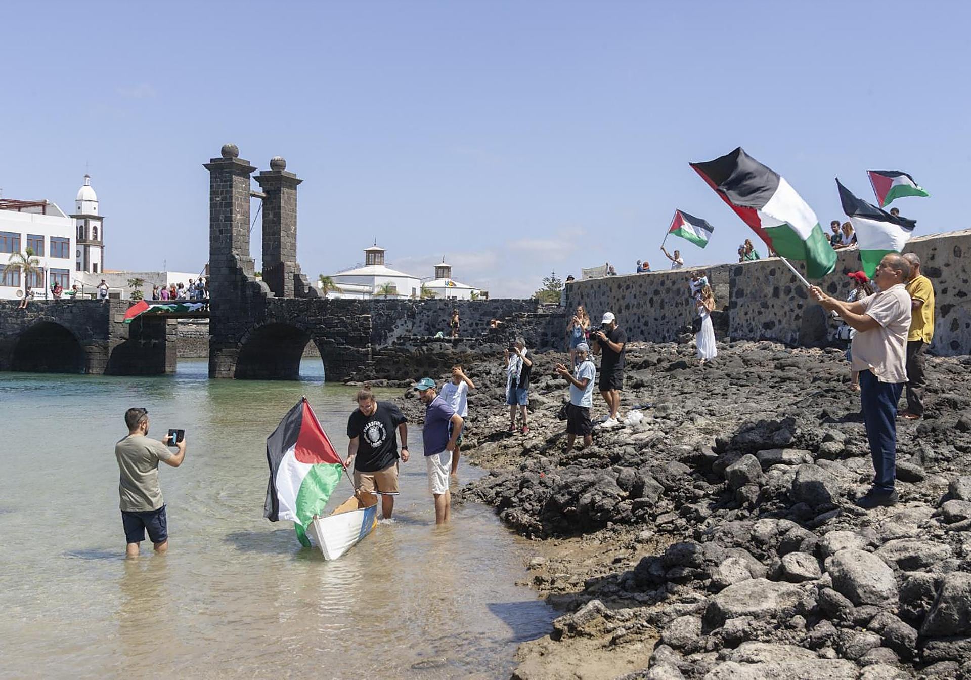 Pasado el mediodía de este sábado tuvo lugar, en plena marina de Arrecife, un acto de rechazo al genocidio que se está produciendo en Gaza, causado por Israel.