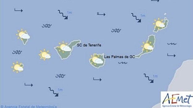 Las temperaturas mínimas serán de 21 grados en Las Palmas de Gran Canaria y de 20 en Santa Cruz de Tenerife, mientras que las máximas alcanzarán los 25 grados en ambas capitales.
