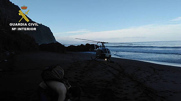 A la mañana siguiente un helicóptero de la Guardia Civil que realizaba un vuelo de vigilancia de la costa detectó la presencia de la joven, que hacía señales con una toalla roja, por lo que realizó la maniobra de acercamiento.
