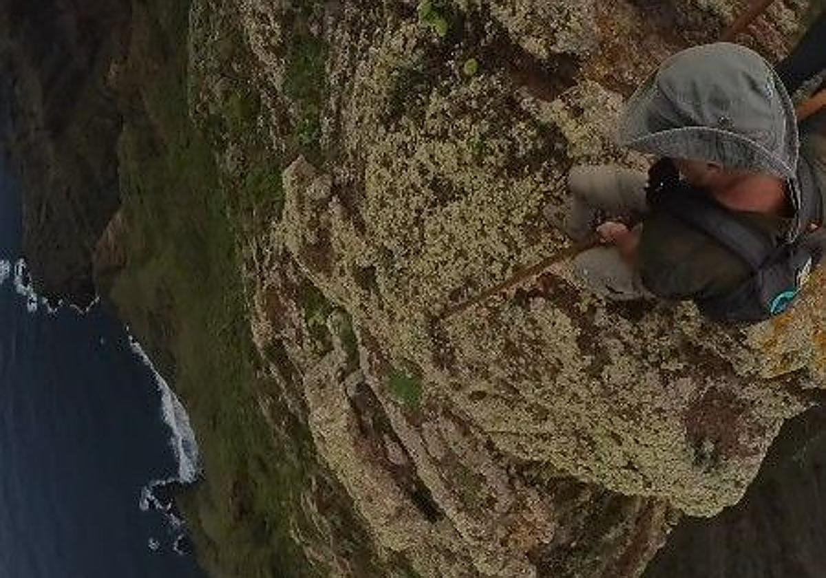 En un vídeo grabado con una cámara de 360 grados se puede observar a un hombre 'bastoneando' por una escarpada montaña. A sus pies, muy en el fondo, se observa el mar