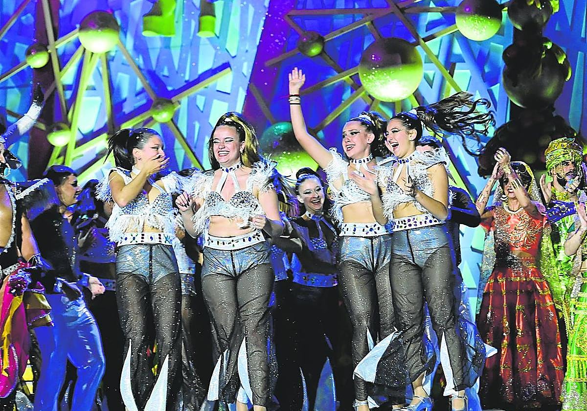 Casi 400 herederos de Don Carnal rindieron homenaje al disfraz en la segunda jornada del carnaval de Las Palmas de Gran Canaria. El concurso de disfraces adultos acabó con el galardón de mejor coreografía en el grupo de Enseñanzas Artísticas Alexia Rodríguez, con la fantasía 'A ritmo de Carnaval'. El diseño de Carmen Elías hizo lucir el baile de sus diecisiete componentes, según informó la organización.