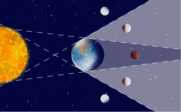 Este fenómeno es el resultado de la alineación perfecta entre el Sol, la Tierra y la Luna, de modo que el satélite queda sumergido en la sombra que nuestro planeta proyecta en el espacio, formada por la umbra y la penumbra. Cuando la Luna pasa por la umbra se produce el eclipse lunar en todo su esplendor.