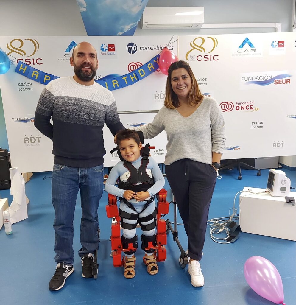 Ahora Isra y Lola viven volcados con su hijo. Él, ingeniero con reducción de horario por el cuidado de Víctor. Ella, sanitaria que trabaja por las mañanas en una UVI. Empezaron a actuar desde que sospecharon que algo no iba bien. «Antes de que llegara el diagnóstico, Víctor ya estaba trabajando: tenía fisio y terapeuta ocupacional. Nos movimos muchísimo, Isra y yo somos unos padres muy pesados», explica entre risas Lola. Pero lo cierto es que “estar encima” e insistir era la única manera de mejorar la calidad de vida de Víctor. Eso, y costear de su propio bolsillo las terapias. 31.770 euros supone cada año el exoesqueleto que posibilitó al pequeño ponerse de pie por primera vez, una estructura especialmente diseñada para niños que les permite realizar ejercicios para retrasar las complicaciones derivadas de la AME. Más de 2.500 euros al mes, a lo que hay que añadir el coste del resto de terapias. La solidaridad de las personas es lo que ha conseguido que Víctor pueda acceder a estos cuidados: «Desde la asociación “El sueño de Víctor” hacemos eventos y recaudamos fondos para las terapias del niño. A final de año, donamos un 10% de lo recaudado a FundAME para el estudio de la enfermedad. Además, tenemos un crowfounding para conseguir fondos para el exoesqueleto. Nunca pensábamos que la gente iba a ser tan buena y tan solidaria. Estamos muy agradecidos». FundAME es una asociación que trabaja para mejorar la calidad de vida de las personas afectadas por la atrofia muscular espinal y que lucha para que se fomente la investigación y divulgación de esta enfermedad.