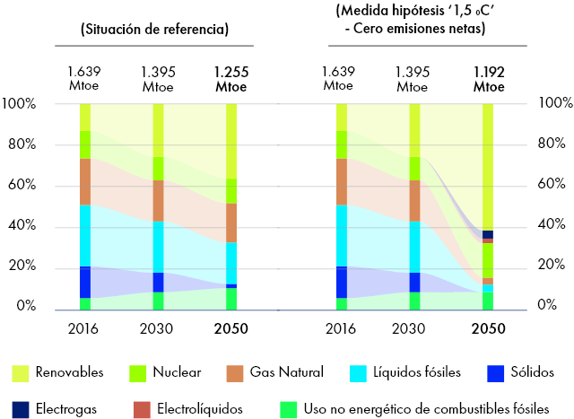 Evolución prevista hacia la neutralidad de carbono en 2050 en la UE