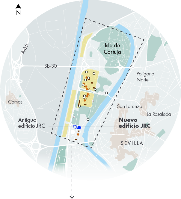 “La elección de Sevilla para albergar el JRC de la Comisión Europea ha sido un espaldarazo definitivo para eCitySevilla”, destaca Rafael Sánchez Durán. “Nos permite establecer una sinergia magnífica”. ¿Por qué? Pues porque el JRC es una instalación que se ha concebido desde el principio como se deberán concebir las ciudades del futuro: con el ciudadano en el centro.