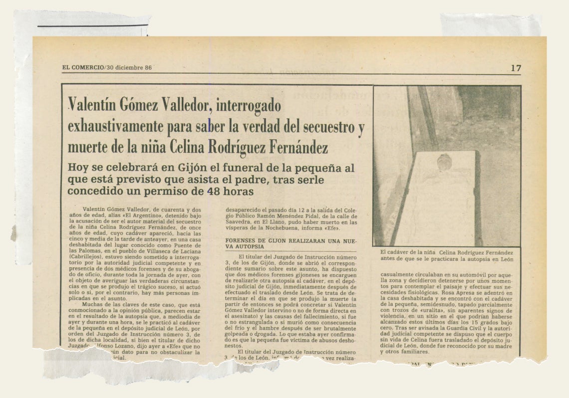 A Celina le arrebataron su infancia con solo 11 años. La secuestraron a la salida de su colegio en Gijón por una venganza contra su padre. Una forma de extorsión que acabó de la peor forma posible: con la niña fallecida. Ocurrió en diciembre de 1986 y fue uno de los episodios más trágicos de la crónica negra de Asturias. Su historia marcó a varias generaciones. Porque Celina Rodríguez Fernández simbolizaba la niñez, la inocencia y la vida como un juego. Que para ella, se tornó en la más dramática realidad.