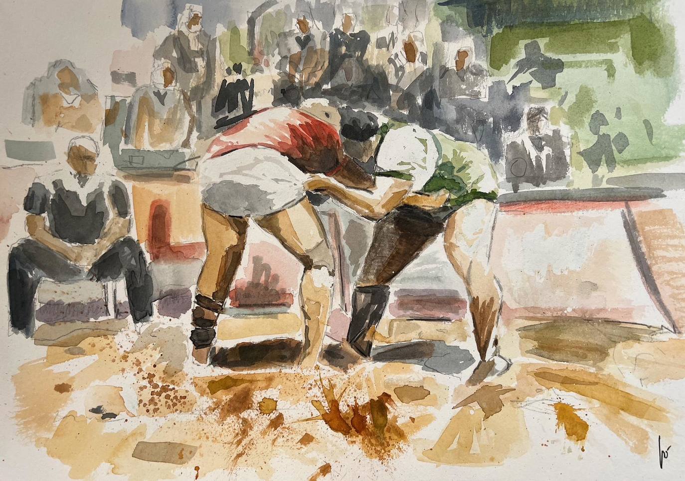 El artista grancanario estrenará el 30 de mayo en Madrid esta exposición compuesta por 22 acuarelas dedicadas al deporte vernáculo