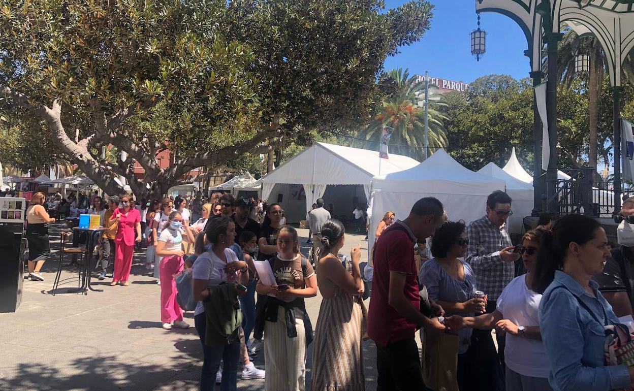 Largas colas para la firma de libros, muchas compras y los negocios de hostelería de la zona de Triana haciendo el agosto en mayo. Es la estampa de la Feria del Libro de Las Palmas de Gran Canaria.