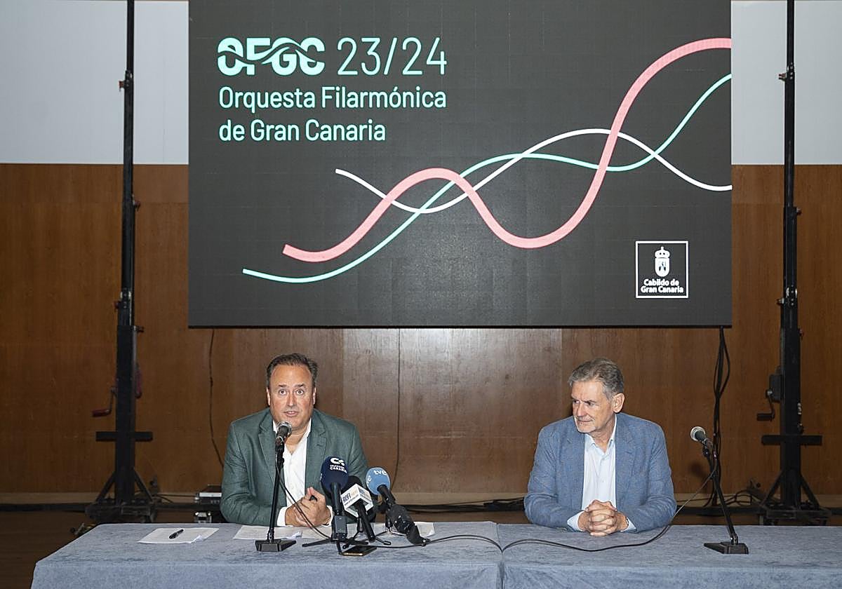 Otro aspecto que Karel Mark Chichon considera capital es la inclusión y promoción de los artistas canarios en el devenir de la OFGC. «Este año hubo nueve canarios, el anterior fueron siete y el próximo serán diez, incluido un compositor. Para mí supone un orgullo apoyar el talento canario», señaló en la rueda de prensa ofrecida junto a Pedro Justo Brito, vicepresidente en funciones de la Fundación OFGC.
