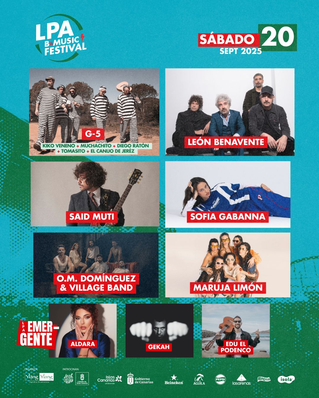 · Escenario LPA B&M: Said Muti (18:30), Sofía Gabanna (20:00), G-5 (21:30), León Benavente (23:30), O.M. Domínguez & Village Band (01:00), Maruja Limón (02:00).