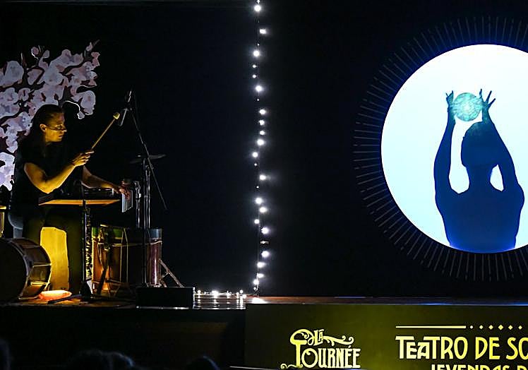 Una percusionista, Amelia Gutiérrez, enriquece esa energía con su música en vivo a pie de escenario, con la que crean desde sensaciones como tensión, alegría o miedo a la explosión del volcán, el murmullo de las olas o el graznido de las pardelas.