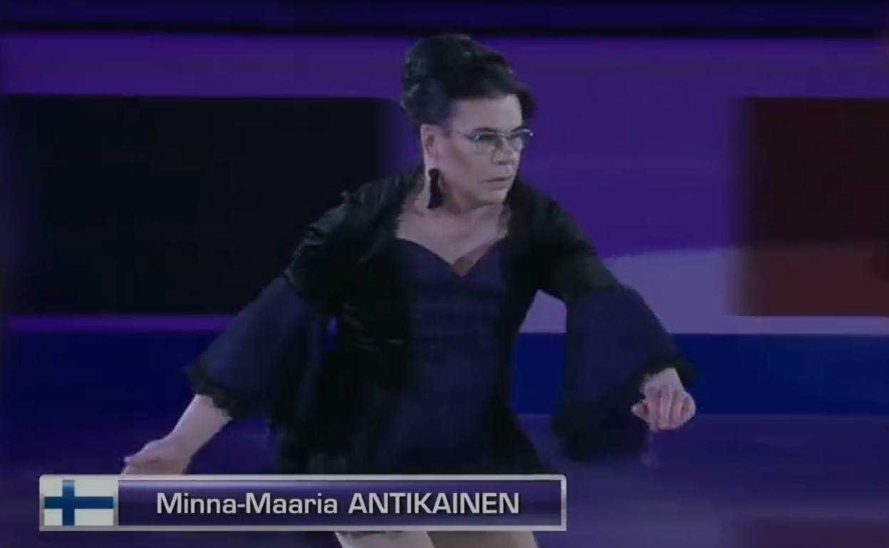 La intervención de Minna-Maaria, de 59 años y que empezó a patinar a los 50, no era una actuación profesional ni alcanzaba la perfección técnica, lo que ha generado debate en redes sociales sobre la idoneidad de su elección.
