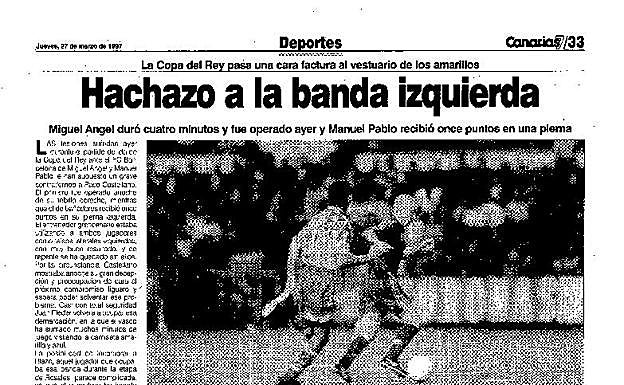Tal día como hoy, en 1997, Miguel Ángel Valerón, entonces figura de la UD, sufrió una entrada de Ferrer que le arruinó la carreraPEDRO GARCÍA