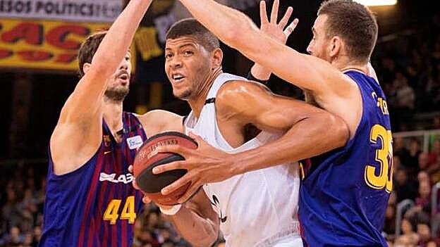 La defensa y los triples de Kyle Kuric (16 puntos y 4 de 7 en tiros de tres) anularon el talento del Real Madrid en el Palau Blaugrana, donde el Barcelona confirmó su buen momento de forma con un triunfo de prestigio (86-69) que le permite situarse como líder en solitario de la Liga Endesa.
