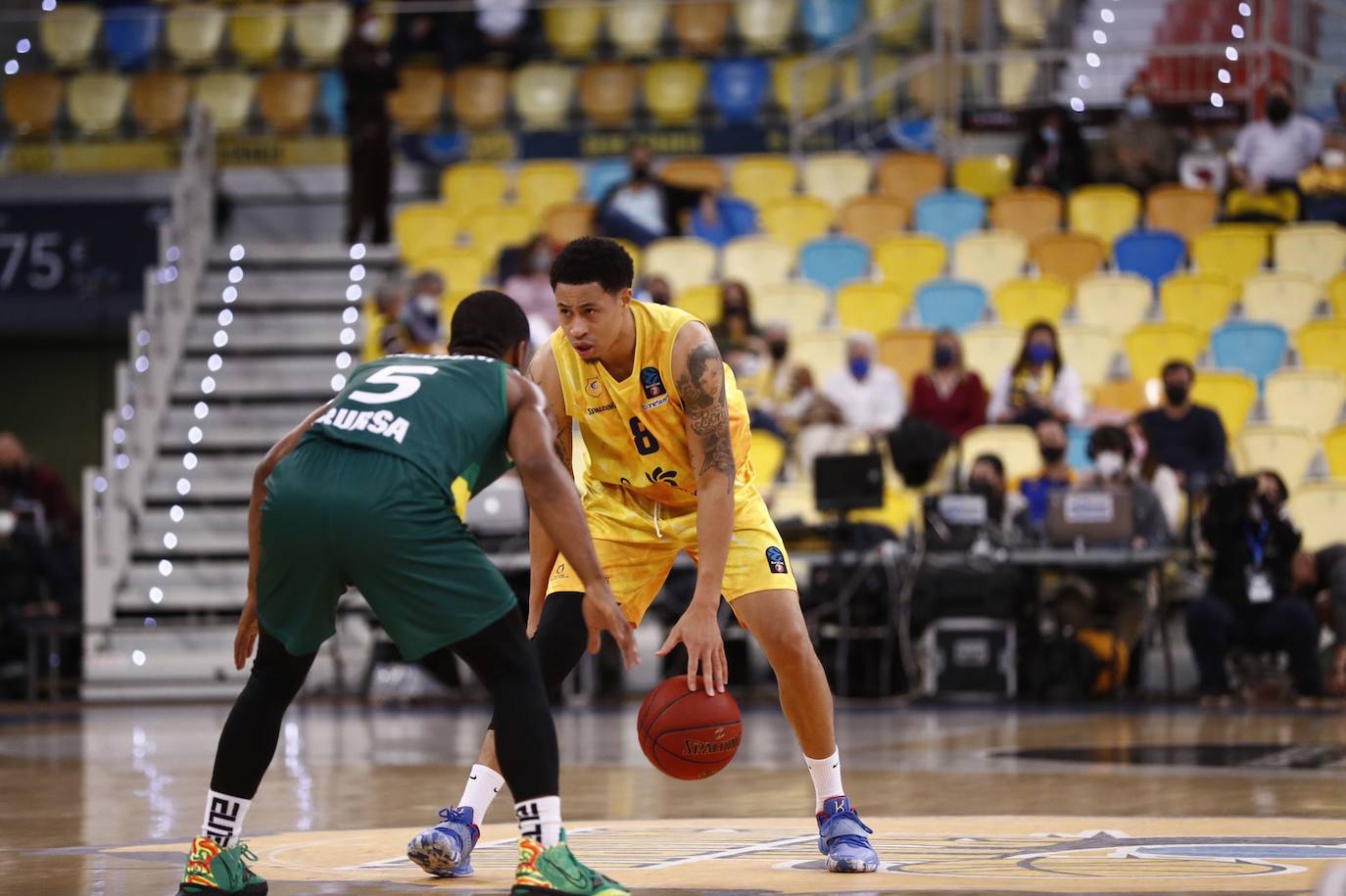 Incidencias: Encuentro correspondiente a la décimo cuarta jornada del grupo B de la fase regular de la Eurocopa de clubes -Eurocup- disputado en el Gran Canaria Arena ante 1.565 espectadores. Antes de iniciar el partido los quintetos titulares portaron pancartas individuales y se guardó un minuto de silencio en apoyo y solidaridad con el jugador amarillo Artem Pustovyi y con todo el pueblo ucraniano por la invasión rusa.