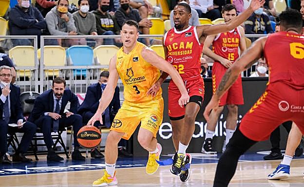 Paso atrás del Gran Canaria para cerrar el 2021. Los claretianos, con las fuerzas muy justas limitados por una rotación mermada por las numerosas bajas, fueron justamente superados por el UCAM Murcia, el cuadro de Sito Alonso que lo bordó desde más allá de la línea de tres puntos (enchufó 15 por los solo dos de los isleños) y se lleva un triunfo valioso que lo acerca un poco más a la Copa del Rey, esa de dónde se alejan los amarillos.