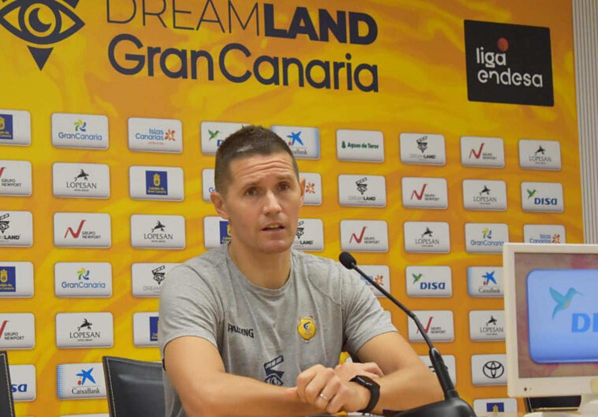 El entrenador del CB Gran Canaria reconoce que la escuadra maña «es todo un equipazo» y elogia la figura de AJ Slaughter, que vuelve a la isla como rival este domingo a las 12:00 horas en el Arena