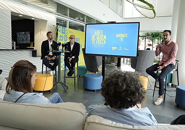 Con la presencia de patrocinadores importantes del Club Baloncesto Gran Canaria como Aguas de Teror, Ahembo (a través de Clipper) y DISA, el director comercial y de marketing del club insular, Paris García, y el CEO2 de la agencia canaria 22 Grados, Eladio Bombín, desgranaron los detalles de la campaña de abonados y del spot promocional (los aficionados podrán verlo en el Centro Comercial Alisios este martes con motivo de la presentación de la plantilla y del cuerpo técnico 2025-2026 y de las nuevas equipaciones) en el espacio de trabajo 'Work in Cholas', ubicado en la zona de La Minilla de la capital grancanaria.