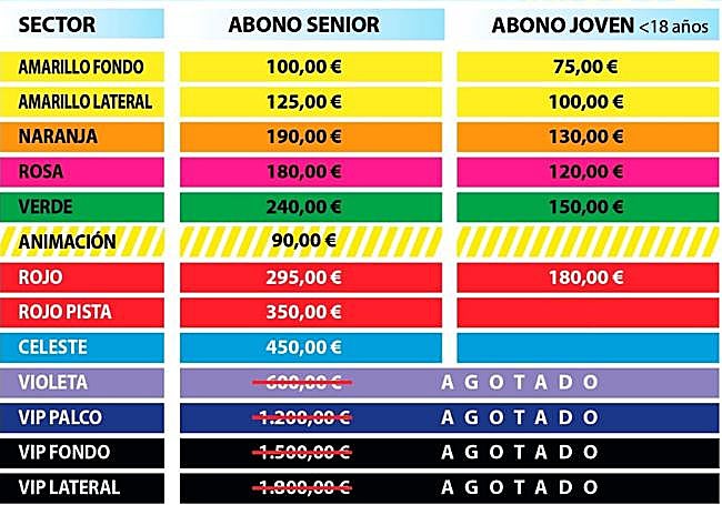 Los precios según el sector en el recinto de Siete Palmas oscilan entre 75 y 180 euros para el abono joven y los 100 y 450 euros para el adulto