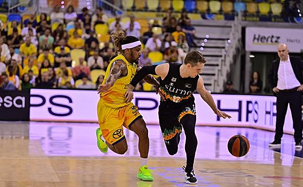Durante los primeros diez minutos hubo muchas pérdidas de pelota por parte de los visitantes (seis en el primer cuarto) y Hakanson asumía galones para sumar puntos hasta conseguir un parcial de 0-5 para su equipo. A los grancanarios se les veía enteros, terminaban el primer cuarto con un 77% de acierto en tiros de campo y quince arriba en el marcador (29-14).