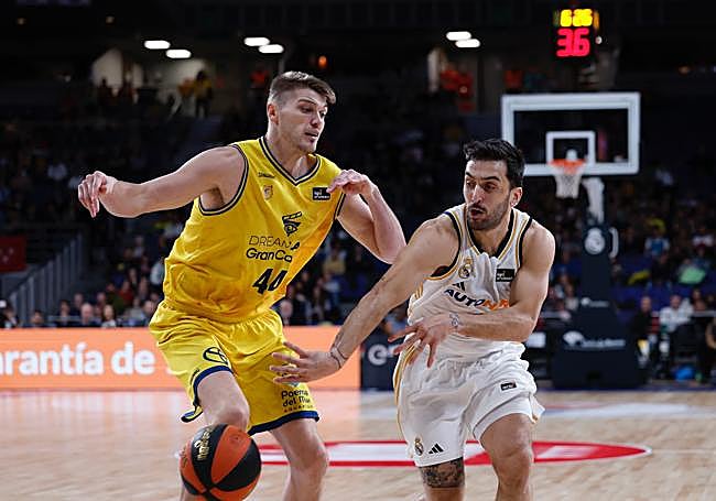 El combinado claretiano no pudo con un Real Madrid intratable y muy superior durante todo el encuentro | Ethan Happ, con 26 puntos y seis rebotes, el mejor de los amarillosEl Dreamland Gran Canaria se presentaba en el WiZink Center de Madrid con la intención de dar la sorpresa de la jornada, pero no pudo ser. El equipo de Jaka Lakovic no supo gestionar el vendaval blanco, sobre todo, en la primera mitad. Érase una máquina de anotar llamada Real Madrid. Los amarillos, que salieron de inicio con Albicy, Slaughter, Brussino, Pelos y Happ, fueron arrollados por el conjunto blanco desde los primeros instantes, sin dar un ápice de esperanza a los grancanarios. Siendo muy superior sobre los claretianos, justo lo contrario a lo que suedió el otro día ante Aris en BKT Eurocup.