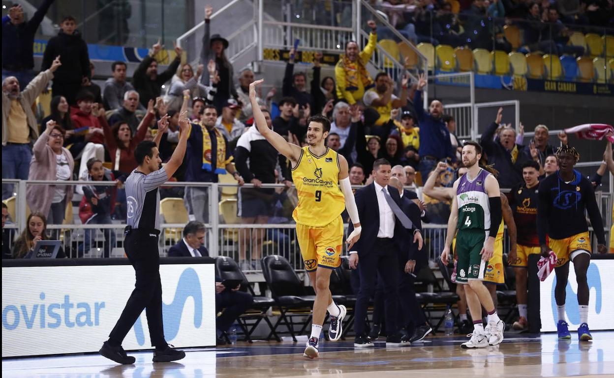Seis puntos del Gran Canaria llegaron tras las tres asistencias que repartió Brussino a sus compañeros, aportando además una recuperación y seis faltas recibidas, para acabar con esos increíbles 49 créditos de valoración.
