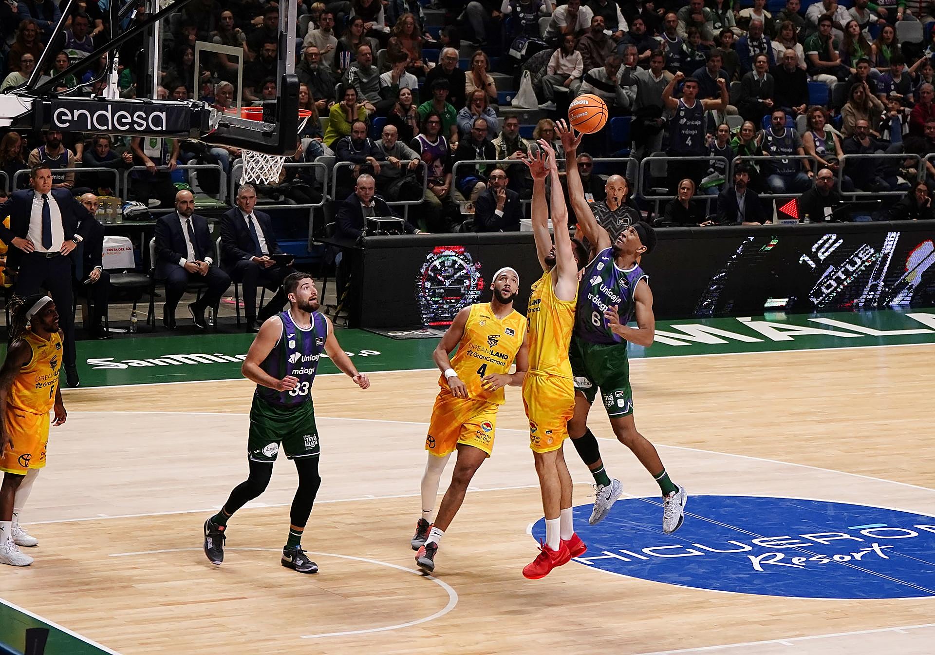 El Dreamland visitaba un verdadero «infierno» para los equipos que actúan como visitantes. Debía el equipo amarillo contrarrestar el perímetro de Unicaja, a la par de extremar la concentración y defender al unísono, en bloque. Tenía que evitar la fluidez del juego de los malagueños en un día que era una fiesta.